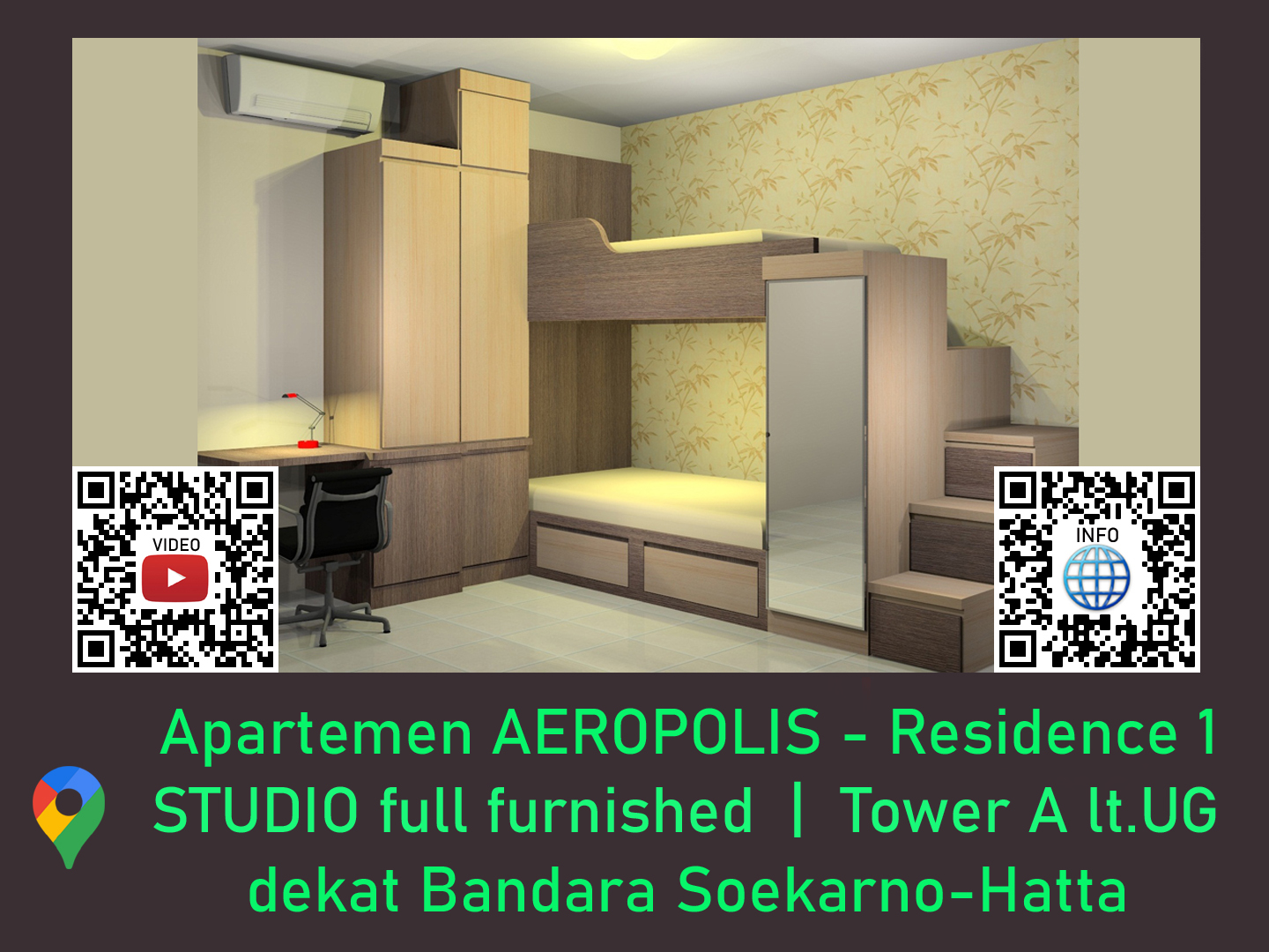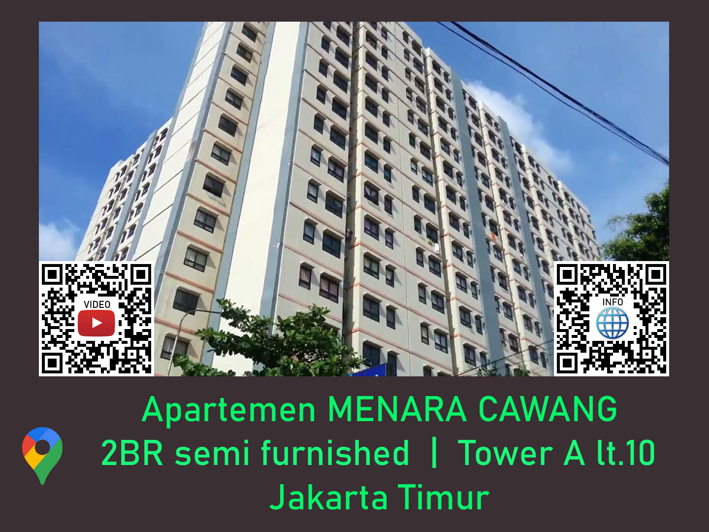 Kami menyewakan beberapa unit Apartemen dan Rumah Tinggal di beberapa wilayah Jakarta, Tangerang dan Bekasi, silahkan Scan atau Klik pada QR code masing-masing untuk melihat VIDEO dan INFO: